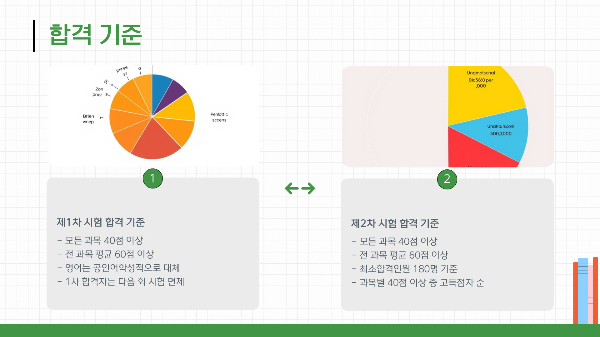 - 제2차 시험: 모든 과목 40점 이상, 평균 60점 이상
